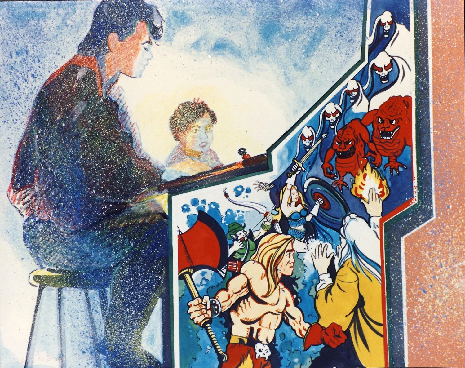 Battle Between Good and Evil Rages On Video Games SeriesMixed Media on Cotton Rag Paper21” x 25”1988— Available from Artist's Collection — View all Signature Works
