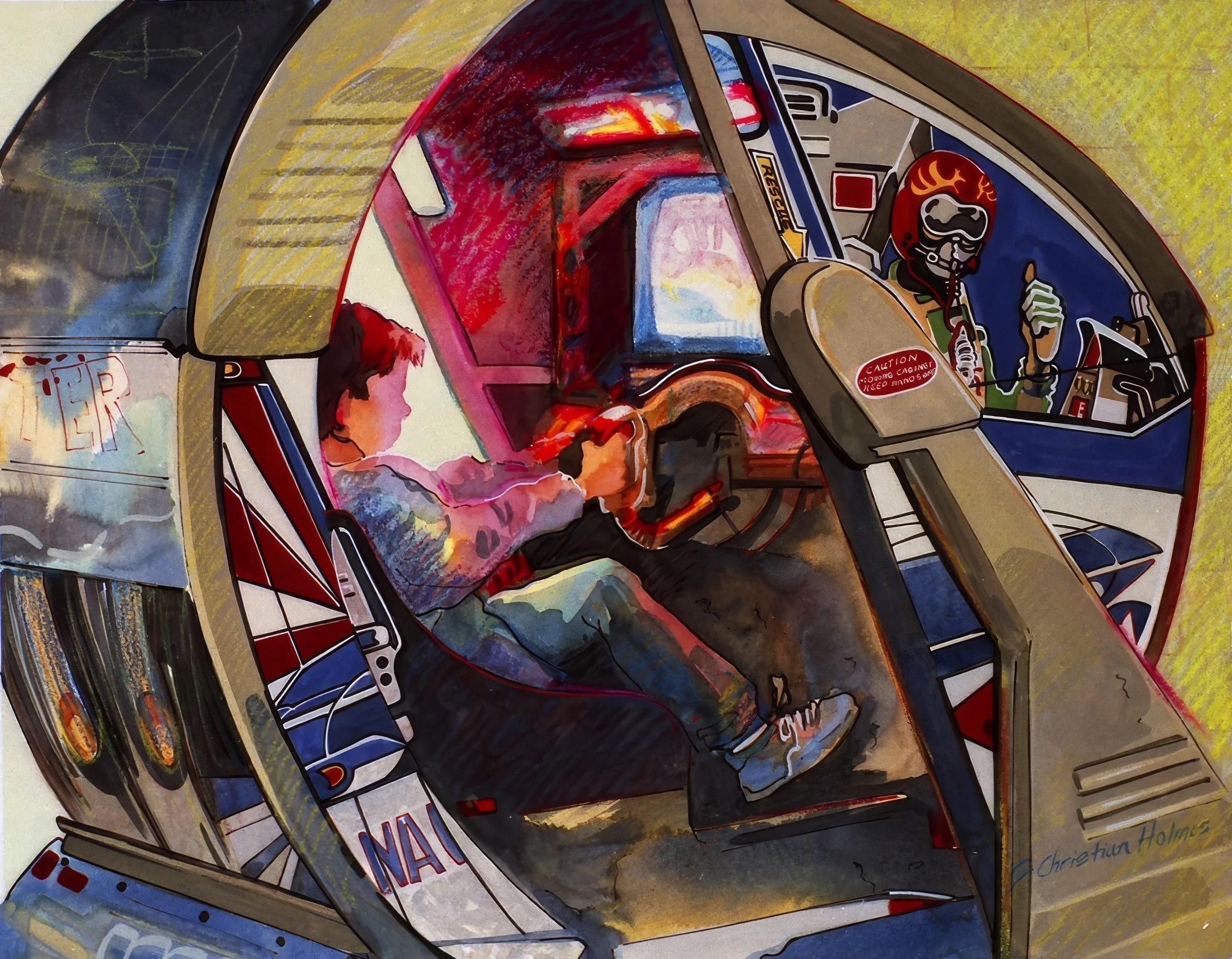 View fullsize  <strong>Final Lap</strong>  Video Games Series  Mixed Media  21” x 25”  1988  —  SOLD —